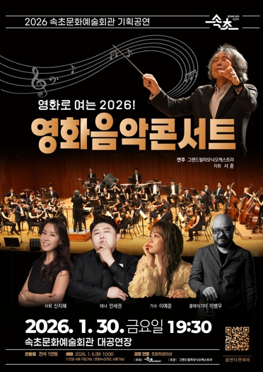 [뉴스스텝] 속초시가 2026년 새해를 맞아 1월 30일 오후 7시 30분, 속초문화예술회관 대공연장에서 ‘영화로 여는 2026! 영화음악콘서트’를 개최한다.