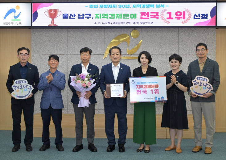 [뉴스스텝] 울산 남구는 행정안전부가 후원하고 (사)한국공공자치연구원(KPA)(원장 이기헌) 주관으로 진행된‘민선 지방자치 30년, 지역경쟁력 향상 평가’에서 ‘지역경제 부문 전국 1위’를 기록해 최우수기관으로 인증받고 전국 '최고 수준'의 지방자치 경쟁력을 입증했다.
