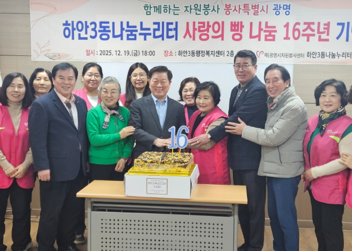 [뉴스스텝] 광명시 하안3동 나눔누리터는 광명시자원봉사센터, 하안3동 행정복지센터와 함께 지난 19일 하안3동 행정복지센터 2층 회의실에서 ‘사랑의 빵 나눔’ 16주년 기념식을 개최했다.
