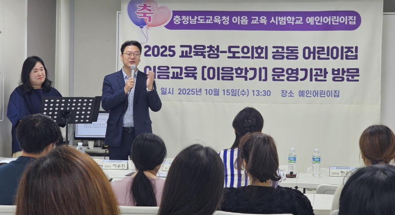 [뉴스스텝] 충남교육청은 15일, 충청남도의회 신한철 의원과 함께 천안시 예인어린이집을 대상으로 어린이집 이음교육(이음학기) 운영 현장을 방문했다.