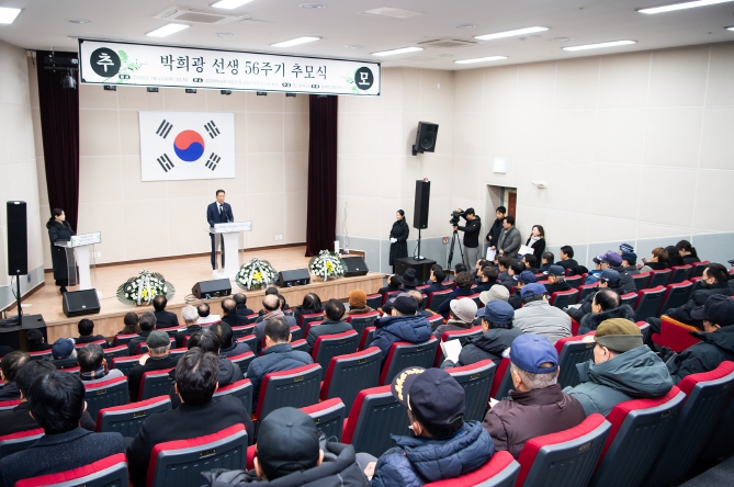추모식은 유족인사, 추모사, 헌시 낭송, 여성 트리오 성악팀의 추모공연, 헌화 순으로 진행됐다. 특히 한국문인협회 최재건 시인이 박희광 선생을 기리며 직접 지은 추모시를 낭독해 의미를 더했다.