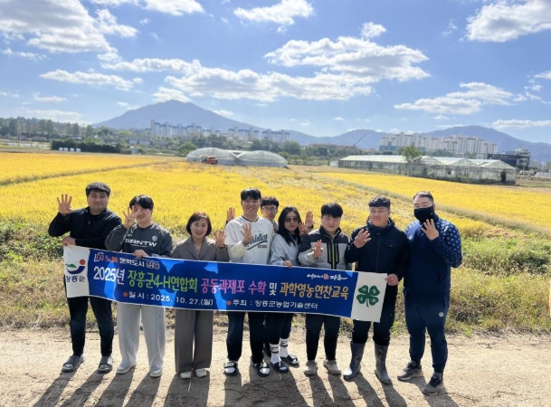 | ▲ 장흥군4-H연합회, 벼 공동과제포 수확과 영농기술 공유 |