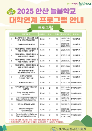 2025 안산 늘봄학교 대학연계 프로그램 10월 본격 운영