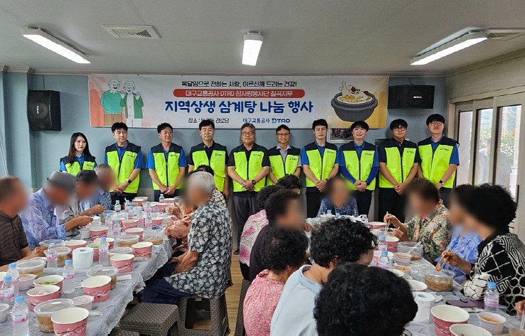 [뉴스스텝] 대구교통공사 참사랑봉사단 칠곡지부는 지난 7일 북구 국우동 행정복지센터와 함께동호동 관내 어르신 60여 세대를 대상으로 ‘어르신 건강기원 삼계탕 나눔 행사’를 개최했다.