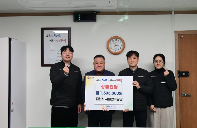 [뉴스스텝] 김천복지재단은 지난 26일, 김천시 시설관리공단으로부터 성금 1,535,300원을 전달받았다고 밝혔다.