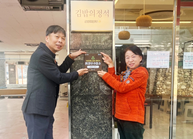 이번에 수여된 현판에는 ‘1회용품 사용 줄이기 환경우수업소’라는 문구와 업소명인 ‘김밥의 정석’이 표기되어 지역사회 내 친환경 실천의 모범이 될 예정이다.