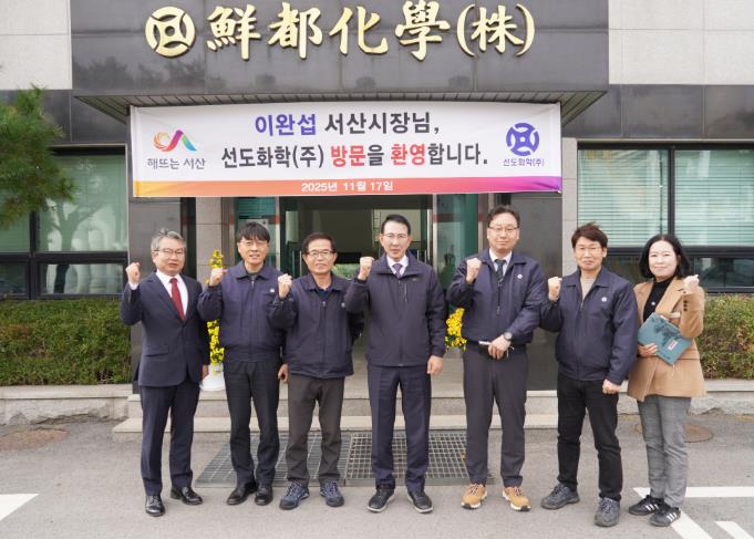 | ▲ 17일 이완섭 서산시장이 선도화학㈜을 방문했다. ②17일 이완섭 서산시장이 태경케미칼㈜을 방문했다. |