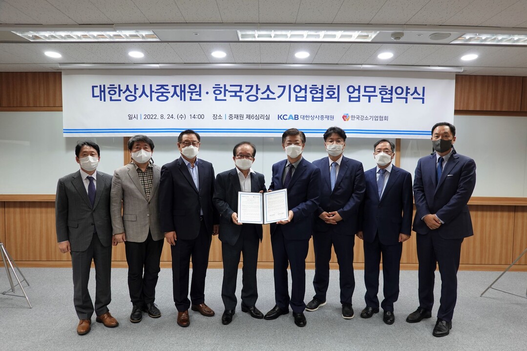 [뉴스스텝] 대한상사중재원(원장 맹수석, 이하 중재원)과 한국강소기업협회(회장 심상돈, 이하 강기협)는 8월 24일(수) 중재원 심리실에서 업무 협약을 맺고 양 기관의 협력 강화를 약속했다.