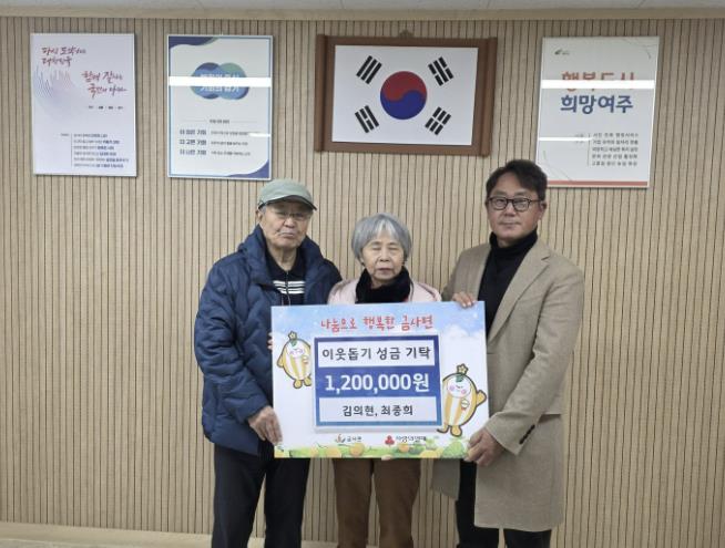 [뉴스스텝] 금사면 생활개선회 최종희 회장이 배우자와 함께 지난 24일 여주시 금사면행정복지센터를 방문하여 이웃돕기 성금 120만원을 기탁했다.