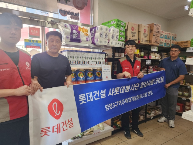 이번 후원은 양정3구역주택재개발 정비사업 현장의 '롯데건설 샤롯데봉사단 양삼사랑나눔팀'에서 사회공헌활동의 일환으로 이루어졌으며 부산진구 푸드마켓 운영에 부족한 물품을 확인하여 기부물품을 정했다.