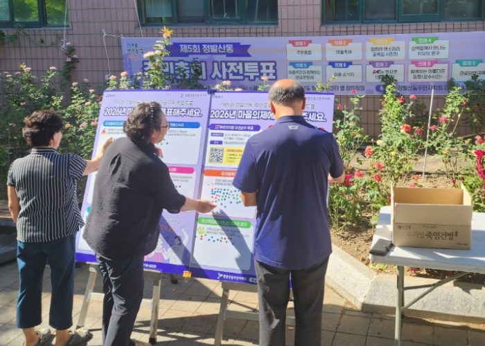 정발산동 주민이라면 누구나 사전투표 게시판에서 원하는 마을 의제에 스티커로 투표할 수 있으며, 최종 결과는 주민총회에서 발표되어 2026년 주민자치 사업의 우선순위 결정에 활용된다.
