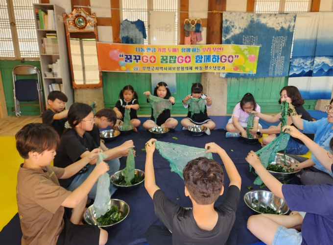 | ▲ 염색체험을 하고 있는 무안 아동·청소년들 |