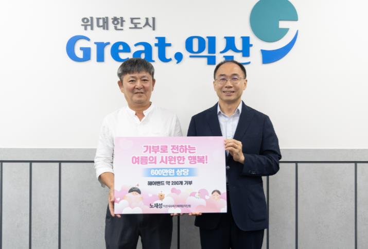 익산시 관계자는 "땀은 식히고 마음은 따뜻하게 하는 나눔을 실천해 주셔서 감사드린다"며 "야외근로자들이 잠시나마 더위를 잊을 수 있도록 물품을 정성껏 전달하겠다"고 밝혔다.