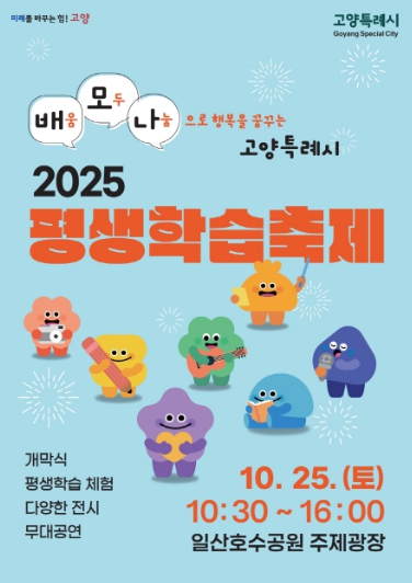 [뉴스스텝] 고양특례시는 오는 25일 일산호수공원 주제광장에서 ‘2025년 고양특례시 평생학습축제’를 개최한다고 밝혔다.