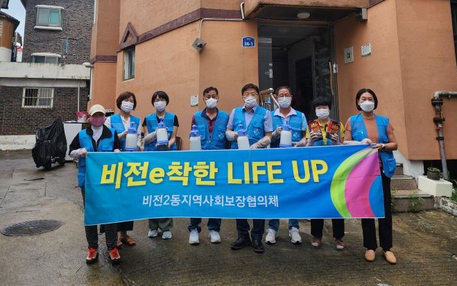 ▲ 비전2동 지역사회보장협의체, 취약계층 주거시설 소독 방역 진행 |
