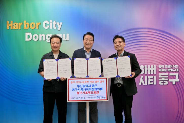 [뉴스스텝] 부산 동구는 지난 22일 동구지역사회보장협의체, 동구기초푸드뱅크와 함께 ‘동구희망나눔점빵’ 지원을 위한 업무 협약식을 가졌다.