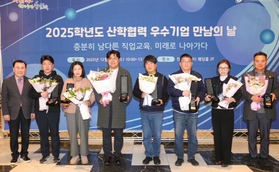 [뉴스스텝] 충남교육청은 24일, 천안 일원에서 직업계고 산학협력 활성화에 기여한 우수기업 40개사에 감사패를 수여하고, 우수 협력 사례를 공유하는 ‘2025학년도 산학협력 우수기업 만남의 날’ 행사를 개최했다.