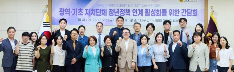 [뉴스스텝] 대구시의회 의원연구단체 ‘대구미래혁신포럼’은 8월 29일, 의회 3층 회의실에서 시·군·구 청년정책 관계자들과 함께 '광역·기초 자치단체 청년정책 연계 활성화를 위한 간담회'를 개최했다.