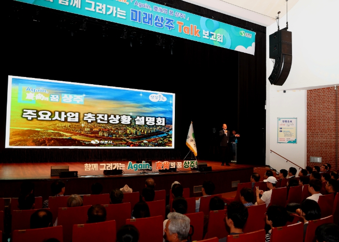 [뉴스스텝] 상주시는 지난 22일 상주문화회관 대공연장에서『시민과 함께 그려가는 미래상주 Talk 보고회』를 개최하고, 민선 8기 시정 방향과 주요 정책을 시민들과 공유하며 소통하는 자리를 가졌다.
