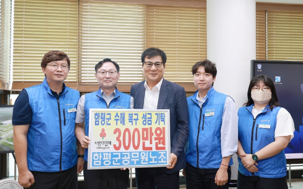 함평군은 1일 “함평군공무원노조가 지난달 29일 집중호우 피해지역의 조속한 복구와 군민 생활 안정을 위해 성금 300만 원을 기탁했다”고 밝혔다.