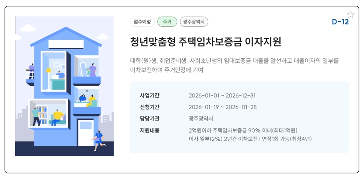 광주광역시, 청년 임차보증금 이자지원 대상자 모집