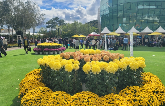 형형색색의 꽃밭 사이로 가족 단위 방문객과 연인들의 포토존 인증이 이어지며, 축제 현장 분위기가 한층 더 활기를 띠고 있다.