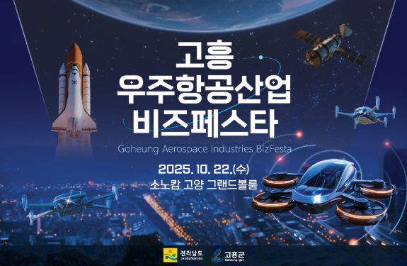 [뉴스스텝] 고흥군은 대한민국 우주항공산업의 중심지로서 미래 전략산업을 선도하기 위해 오는 10월 22일 경기도 고양시 소노캄 호텔에서 ‘2025 고흥 우주항공산업 비즈 페스타’를 개최한다고 밝혔다.