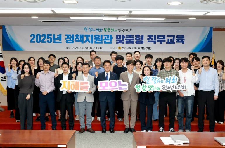 [뉴스스텝] 전라남도의회는 10월 13일, 도의회 초의실에서 소속 정책지원관과 직원을 대상으로 ‘맞춤형 직무교육’을 실시했다.