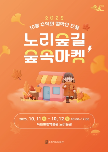 [뉴스스텝] 속초시립박물관이 2025년 10월 11일부터 12일까지 오전 10시부터 오후 5시까지 박물관과 노리숲길 일원에서 ‘2025년 10월 노리숲길 숲속마켓’을 연다. 입장료는 무료다.