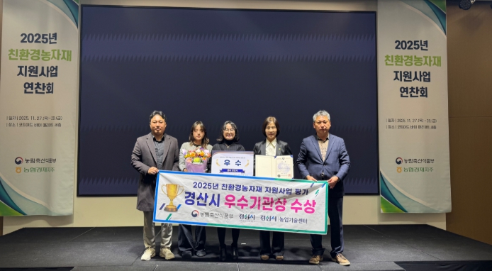 [뉴스스텝] 경산시는 27일 세종시 코트야드 메리어트에서 열린 농림축산식품부 주관의 2025년 친환경농자재 지원사업 연찬회에서 '친환경농자재 지원사업 평가' 우수 기관상을 수상했다고 밝혔다.