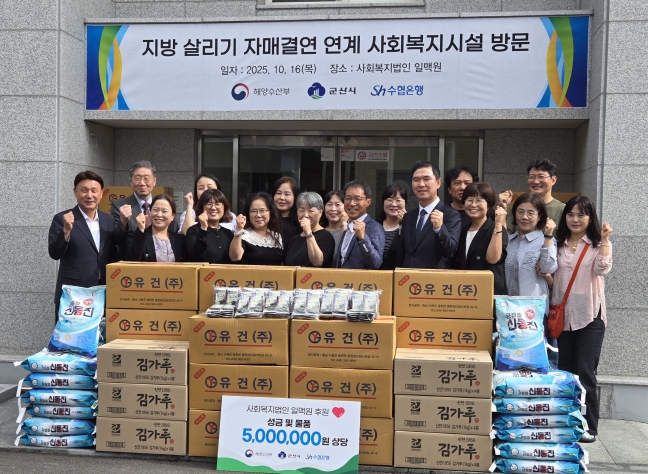 성금과 기부 물품은 해양수산부와 수협은행 본점에서 마련했으며, 지역경제 활성화를 위한 정부 주관 지방상생 자매결연 사업의 하나로 진행됐다.