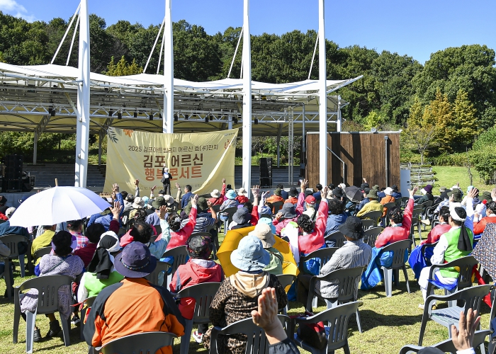 공연, 체험, 상담 등 다채로운 문화예술 프로그램이 운영된 이날 행사에서는 메인 프로그램인 ‘어르신 행복 콘서트’가 열려 큰 호응을 얻었다. 초청가수 진시몬, 하태하, 연예진 외에도 지역 예술인, 김포문화원, 김포시노인종합복지관 수강 어르신 공연팀이 국악, 가요, 무용 등 다양한 무대를 선보이며 관객들의 뜨거운 박수를 받았다. 공연 중간중간에는 경품 추첨과 관객 참여 이벤트도 함께 진행돼, 행사장을 찾은 어르신들에게 즐거움과 활력을 선사했다.