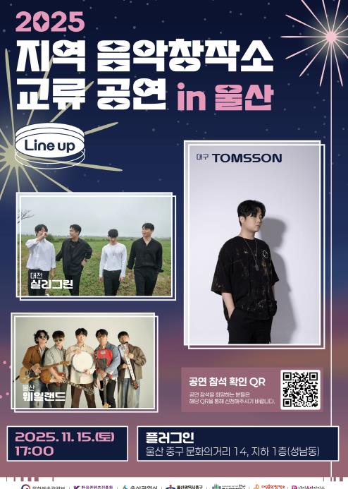 [뉴스스텝] 울산 중구문화의전당에서 운영하는 울산음악창작소가 오는 11월 15일, 11월 16일 오후 5시 성남동 플러그인(문화의거리 14)에서 ‘2025 지역 음악창작소 교류 공연 in 울산’을 개최한다.