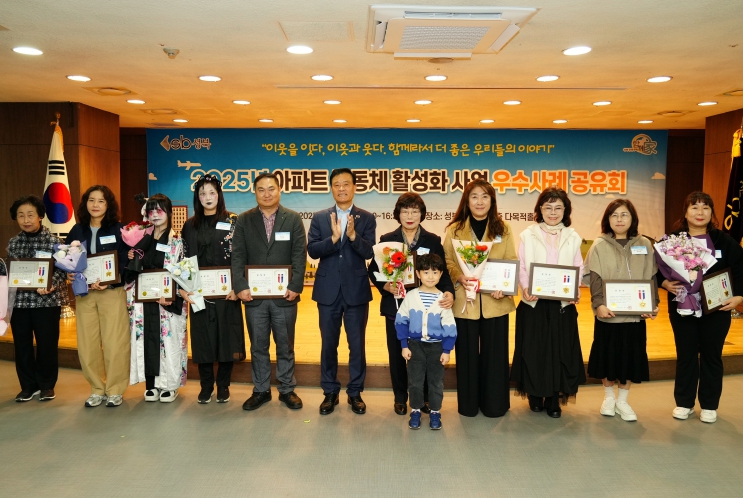 이승로 성북구청장은 “2025년도 성북구 아파트 공동체 활성화 사업 우수사례 공유회를 통해 단지별 우수사례와 성과를 공유하면서 아파트가 더 이상 개인의 주거공간이 아닌 이웃의 따뜻한 정을 느끼며 살아갈 수 있는 행복한 보금자리로 바뀔 수 있는 좋은 계기가 되기를 바란다”고 말했다.