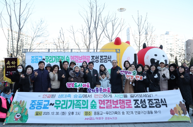 [뉴스스텝] 박강수 마포구청장은 12월 30일 오후 2시, 중동교와 우리가족의 숲(구 선형의 숲) 3단계를 잇는 구간에서 열린 ‘중동교~우리가족의 숲 연결보행로 조성사업 준공식’에 참석했다.