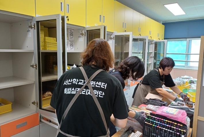 ▲ 서산교육지원청 학교지원센터, 성연중 미술실 정리 지원