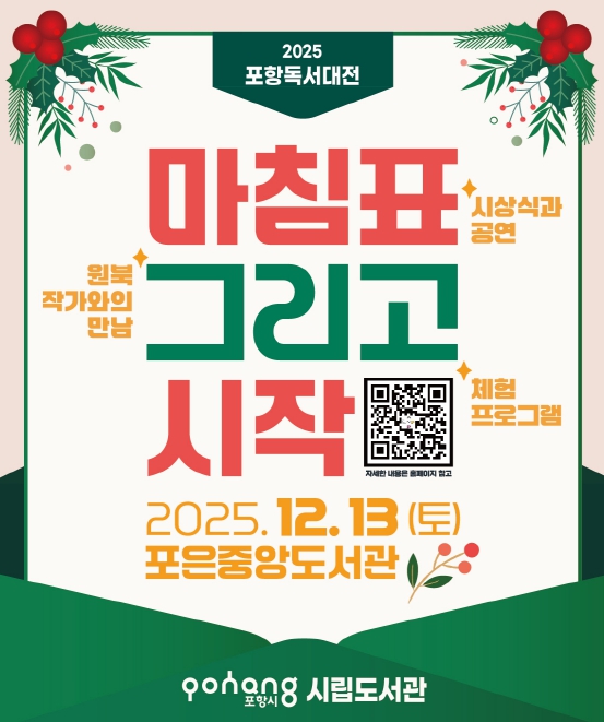 [뉴스스텝] 포항시립도서관은 오는 12월 13일 포은중앙도서관에서 연말맞이 문화행사인 ‘2025 마침표 그리고 시작’을 개최한다.