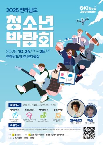 [뉴스스텝] 전라남도는 청소년이 행복한 전남 실현을 위해 도가 주최하고 (재)전남도청소년미래재단이 주관하는 ‘2025 전라남도 청소년박람회’를 24일부터 2일간 전남도청 앞 도민광장에서 개최한다.