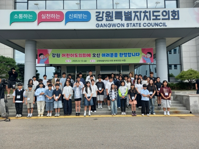[뉴스스텝] 강원특별자치도교육청은 강원특별자치도의회와 함께 12일 오전 10시 강원특별자치도의회 본회의장에서 도내 18개 시‧군 초등학교 5~6학년 학생 53명을 대상으로 ‘2025년 강원 어린이도의회’를 개최한다.