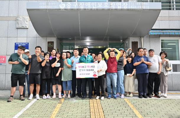 김영길 중구청장은 9월 29일 오후 1시 30분 중구장애인보호작업장을 방문해 시설 이용자들과 명절 인사를 나누고 직원과 자원봉사자들을 격려했다.