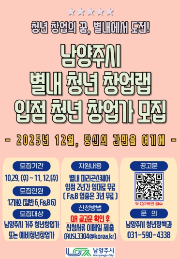 [뉴스스텝] 남양주시는 29일부터 청년 창업가들을 위한 ‘남양주시 별내 청년 창업랩’ 입점자를 공개 모집한다.