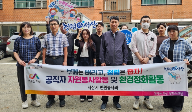 [뉴스스텝] 충남 서산시 민원봉사과는 30일 읍내동 부춘1로 일원에서 도로변 환경정화, 두리사랑보호작업장에서 자원봉사활동을 펼쳤다고 밝혔다.