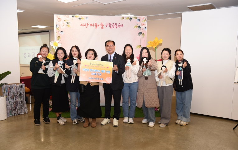 [뉴스스텝] 부산 사상구는 사상 마을이룸 교육공동체 ‘이쑴’(대표 신미자)과 수강생들이 지난 21일 공간523에서 지역 아동을 위해 직접 제작한 애착인형 40개를 사상구청에 기부하며 전달식을 진행했다고 밝혔다.