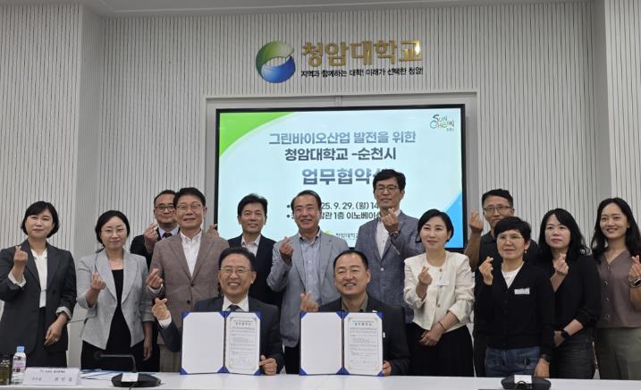 [뉴스스텝] 순천시가 29일 청암대학교 청암관에서 청암대학교와 그린바이오 산업육성을 위한 업무협약을 체결했다고 밝혔다.