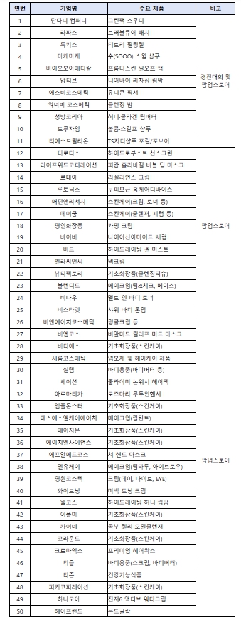 | ▲ 상하이 K-뷰티 글로우 위크 참여기업 명단 |