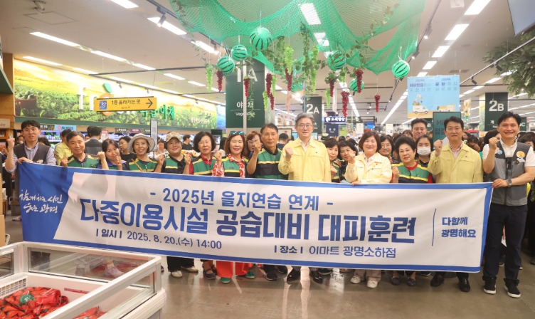 시는 20일 전국적으로 실시된 2025년 을지연습과 연계해 이마트 광명소하점에서 공습대비 민방위 시범훈련을 실시했다.