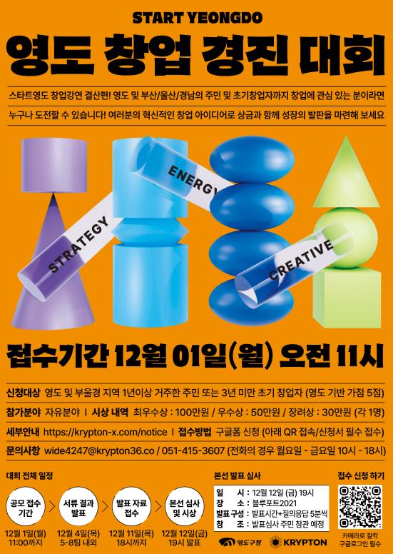 [뉴스스텝] 부산시 영도구는 오는 12월 1일까지 ‘영도 창업경진대회’ 참가자를 모집한다.
