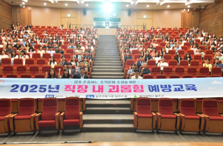 [뉴스스텝] 울산 울주군이 16일 군청 알프스홀에서 간부공무원과 직원 등 400여명을 대상으로 ‘2025년 직장 내 괴롭힘 예방교육’을 실시했다.