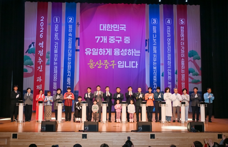 [뉴스스텝] 울산 중구가 1월 7일 오후 2시 중구문화의전당 함월홀에서 ‘2026년 신년인사회’를 개최했다.