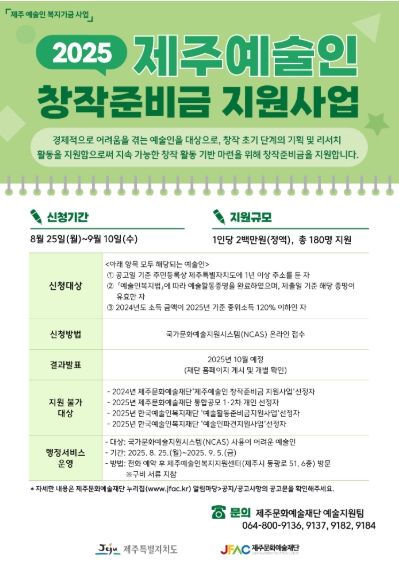 ▲ 포스터 (2025년 제주예술인 창작준비금 지원사업